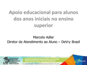PROGRAMAS DE NIVELAMENTO PARA ALUNOS DOS ANOS INICIAIS NO ENSINO SUPERIOR – ESTUDO DE CASO – MARCELO ADLER